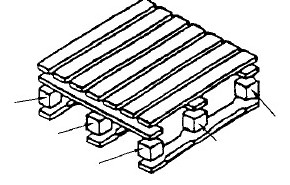 一般在雙重堆垛時,這3條底鋪板的起著承受上層卡板貨物的決定性的作用