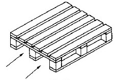 該卡板只有從前后兩個方向進行叉車作業,故稱面進叉木卡板。